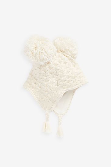 Creme - Baby-Trappermütze mit Doppelpompon (0M.–2J.)
