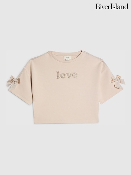 River Island Older Ribbed Sweetheart Bow T-Shirt