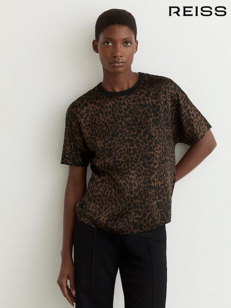 Reiss – Lena – Kurzarm-Seidentop mit Animal-Print