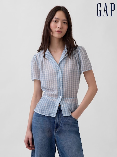 Blau kariert - Gap Transparente Schößchenbluse mit Knopfleiste