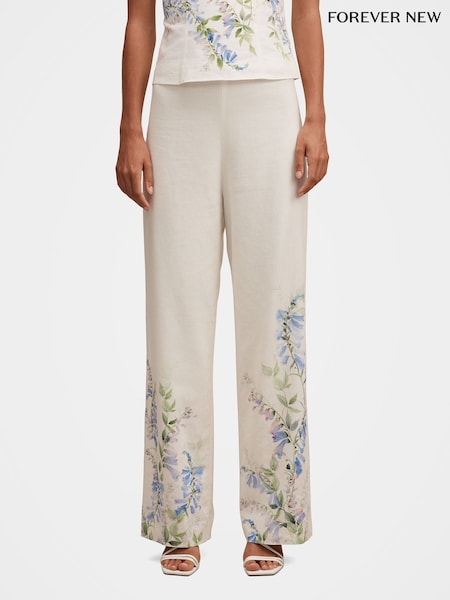 Forever New Soleil Floral Placement Printed Trousers Contains Linen