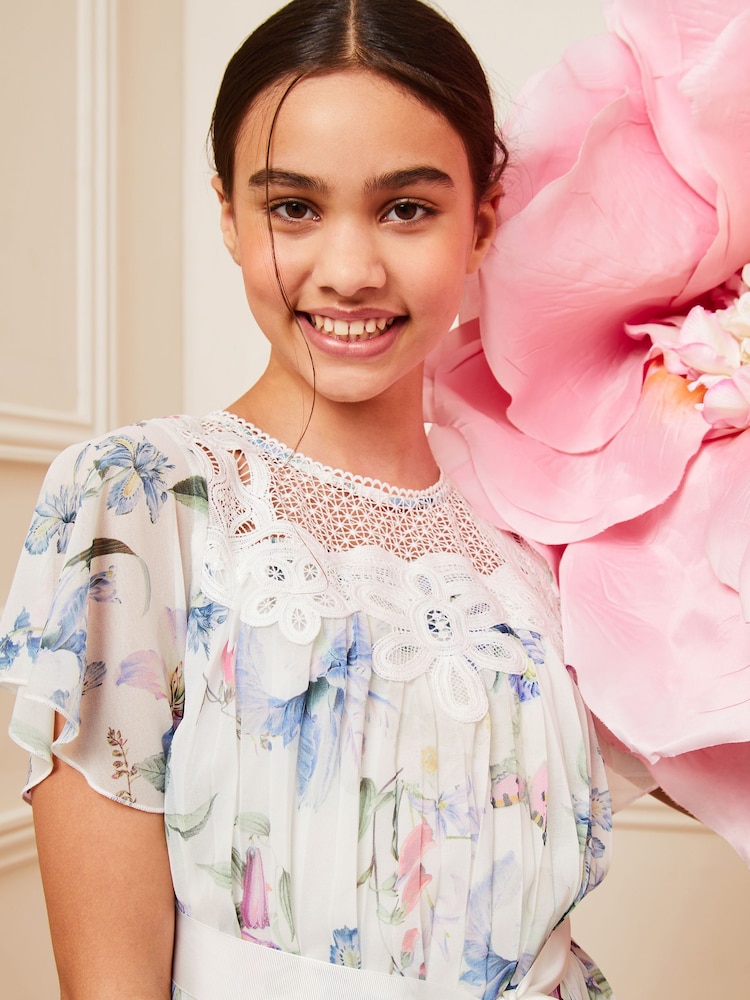 Weiß mit Muster - Lipsy Flatterärmeliges Plisseekleid (5-16 Jahre)