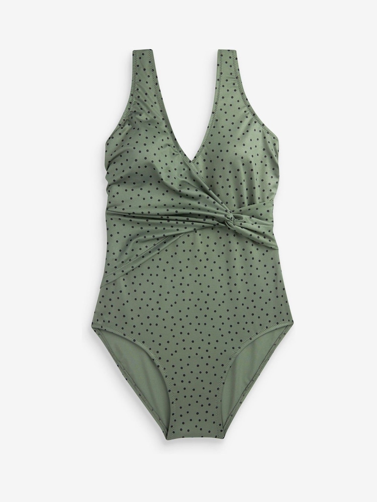 Khakigrün/Punktemuster - Figurformender Badeanzug mit Wickeldesign