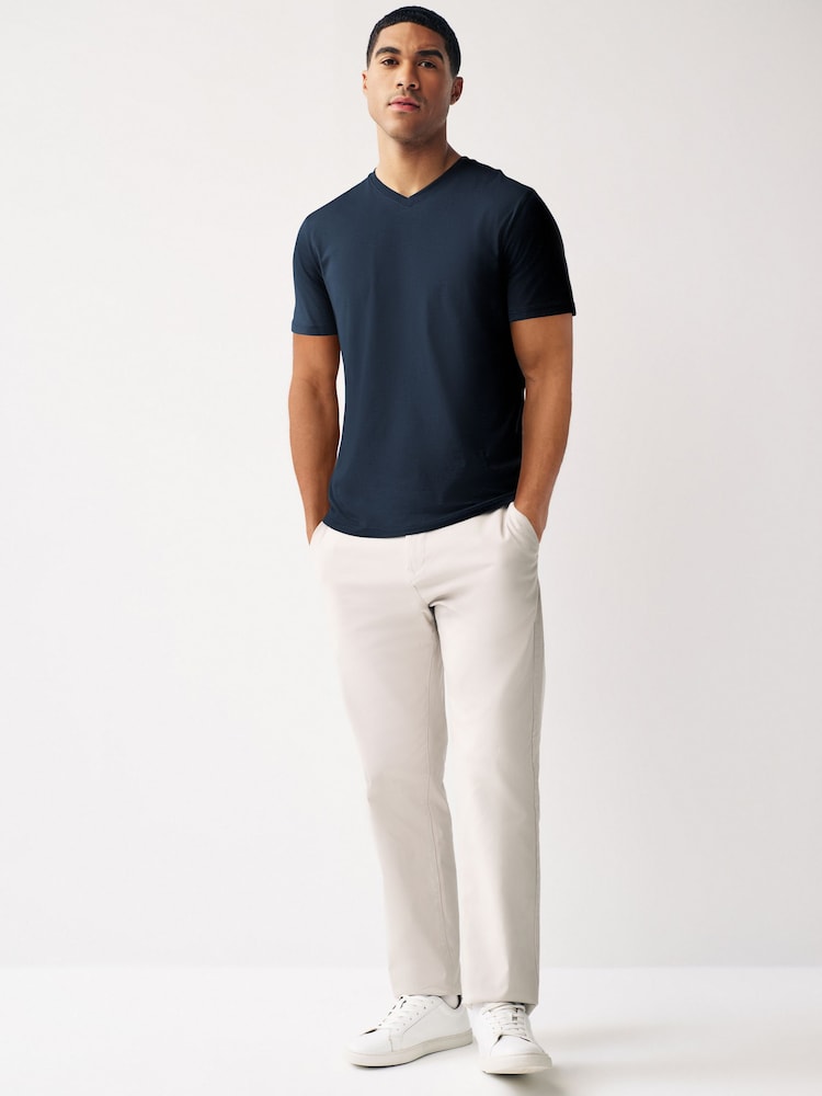 100 % Baumwolle. Kennzeichnet Modelle, die in Langgrößen mit längeren Ärmeln und längerem Rumpfteil erhältlich sind