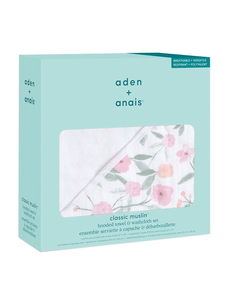 Aden + Anais Kapuzenhandtuch-Set mit 100 % Baumwollmusselin-Futter
