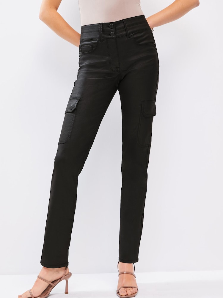 Schwarz - Lift, Style And Shape Beschichtete Utility-Jeans aus Denim in Slim Fit mit Cargotaschen