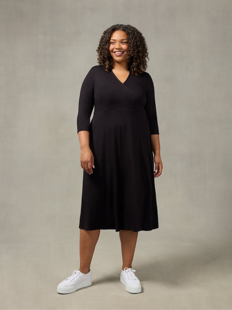 Live Unlimited – Wickelkleid aus Jersey mit Kragen, Curve