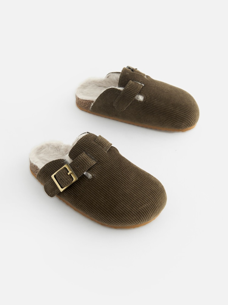 Khakigrün - Warm gefütterter Pantoffel-Clog mit Korkfußbett