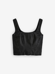 Schwarz - Corsagen-Top mit Nähten aus Denim