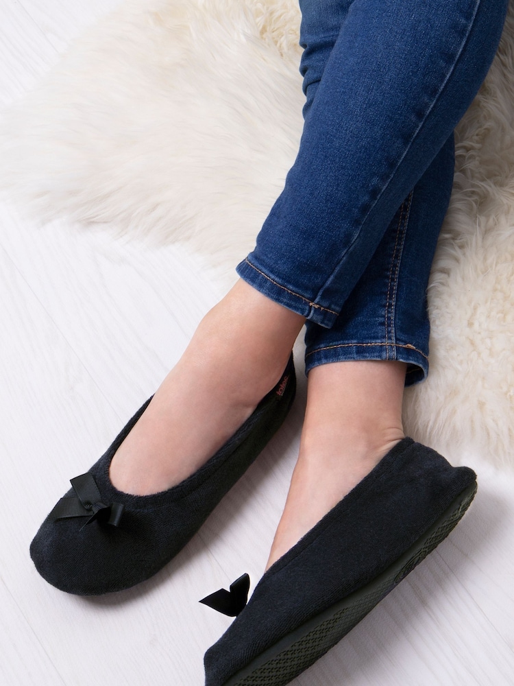Schwarz - Totes Isotoner Frottee-Ballerinas mit Schleife