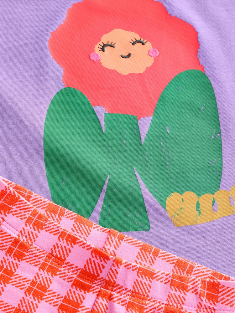 Waschmaschinenfest T-Shirt und T-Shirt 100% Baumwolle. Shorts, Begonie, Pink 15–2215 TC und Shorts: 92 % Baumwolle, 8 % Elastan.
