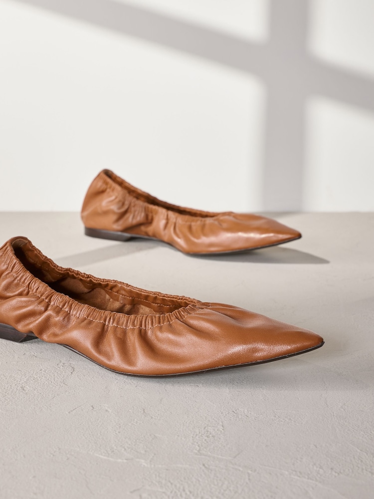 Hellbraun - Signature – Premium-Leder-Ballerinas mit spitzer Zehenpartie und Raffungen