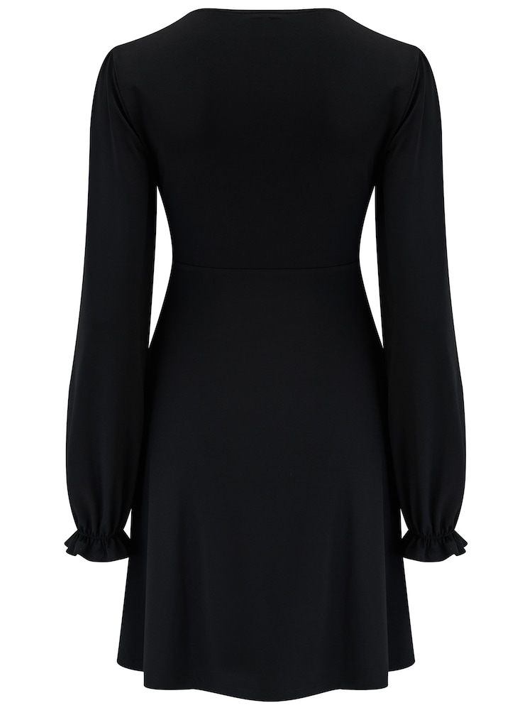 Schwarz - Pour Moi Anya Anschmiegsames, langärmliges Jerseykleid mit Spitzendetail für eine größere Oberweite
