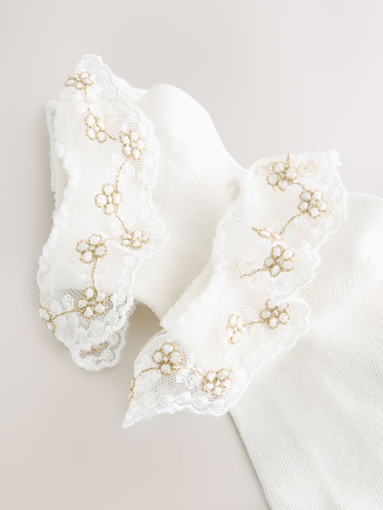 Creme - Brautjungfern-Trainingssocken mit Rüschen und hohem Anteil 2er-Pack