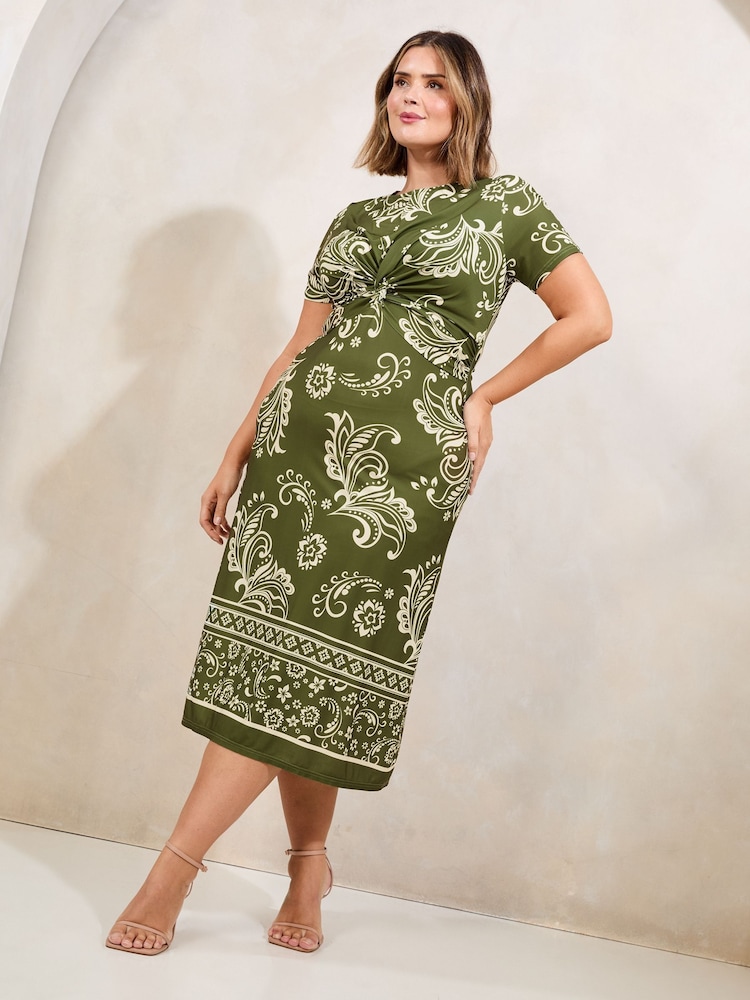 Khakigrün - Lipsy – Jersey-Twist-Midikleid mit kurzen Ärmeln