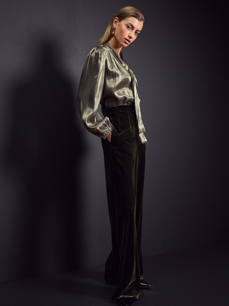 Gold - Metallic-Bluse mit Bindeband am Hals