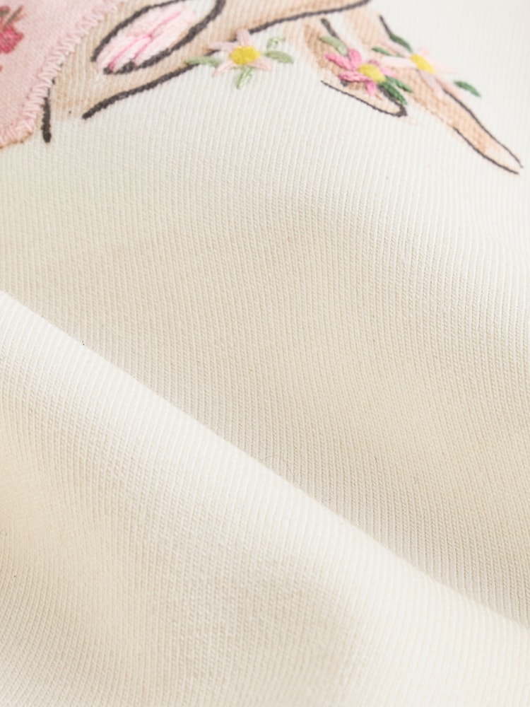 Weiß/Pink/Häschen/floral - Baby-Set aus Langarm-Oberteil und Leggings (0M.–2J.)