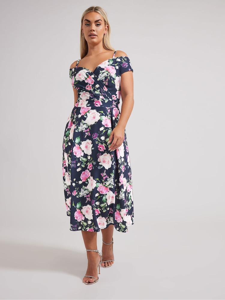 Yours Curve London Floral Cold Shoulder Bardot Dress