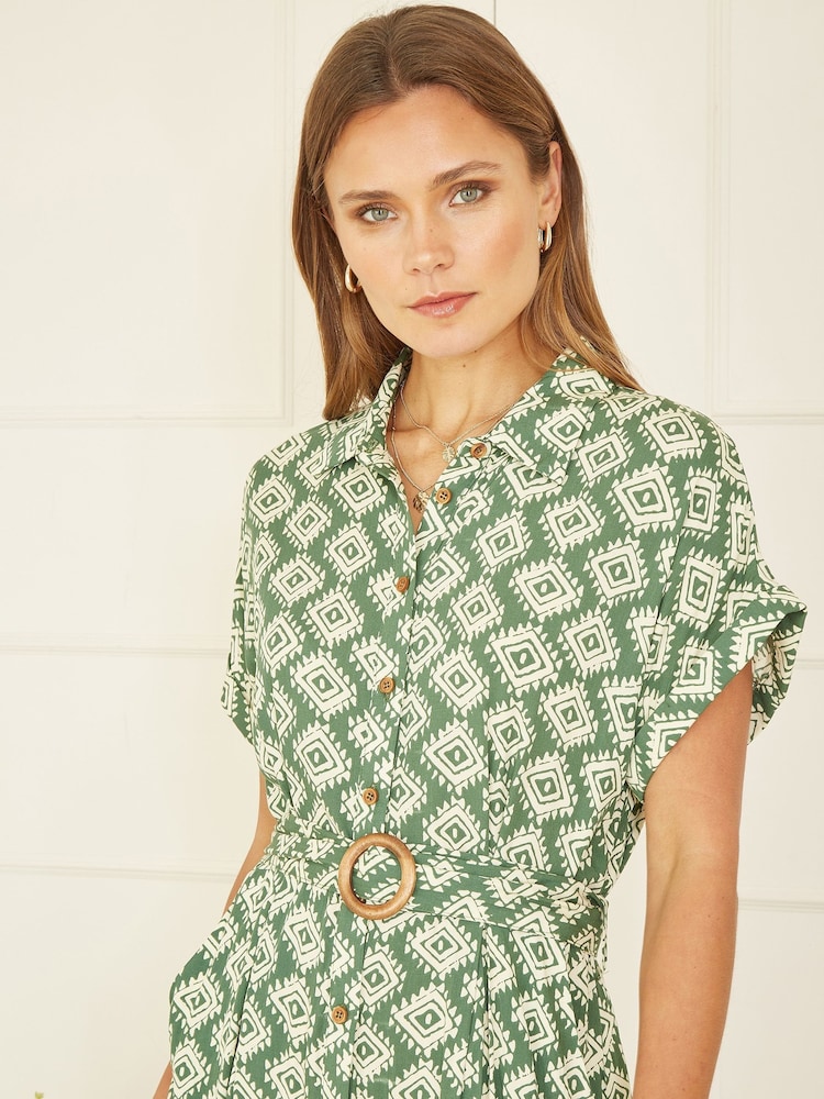 Grün - Yumi Midi-Hemdkleid aus Viskose mit passendem Gürtel
