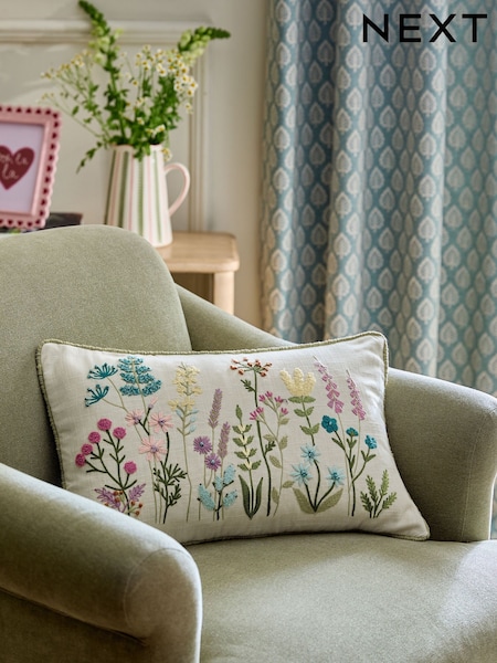 Pink Maisie 50 x 30cm Embroidered Spring Floral Cushion