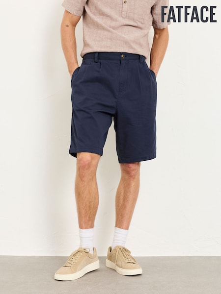 FatFace Navy Pleat Front Chino Shorts