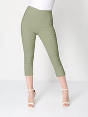 Roman Khaki Green Cropped Stretch Capri Trousers
